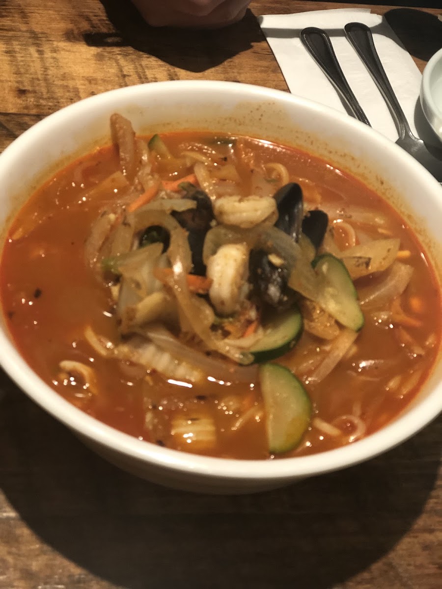 Champon - A Korean-Chinese fusion dish that combines rich, savory broth with a variety of meats, seafood, and vegetables.
