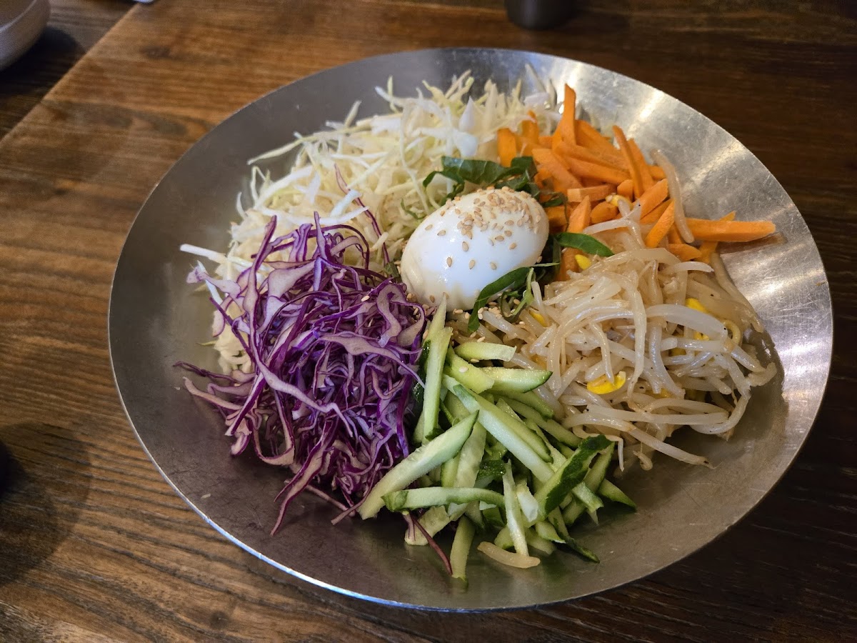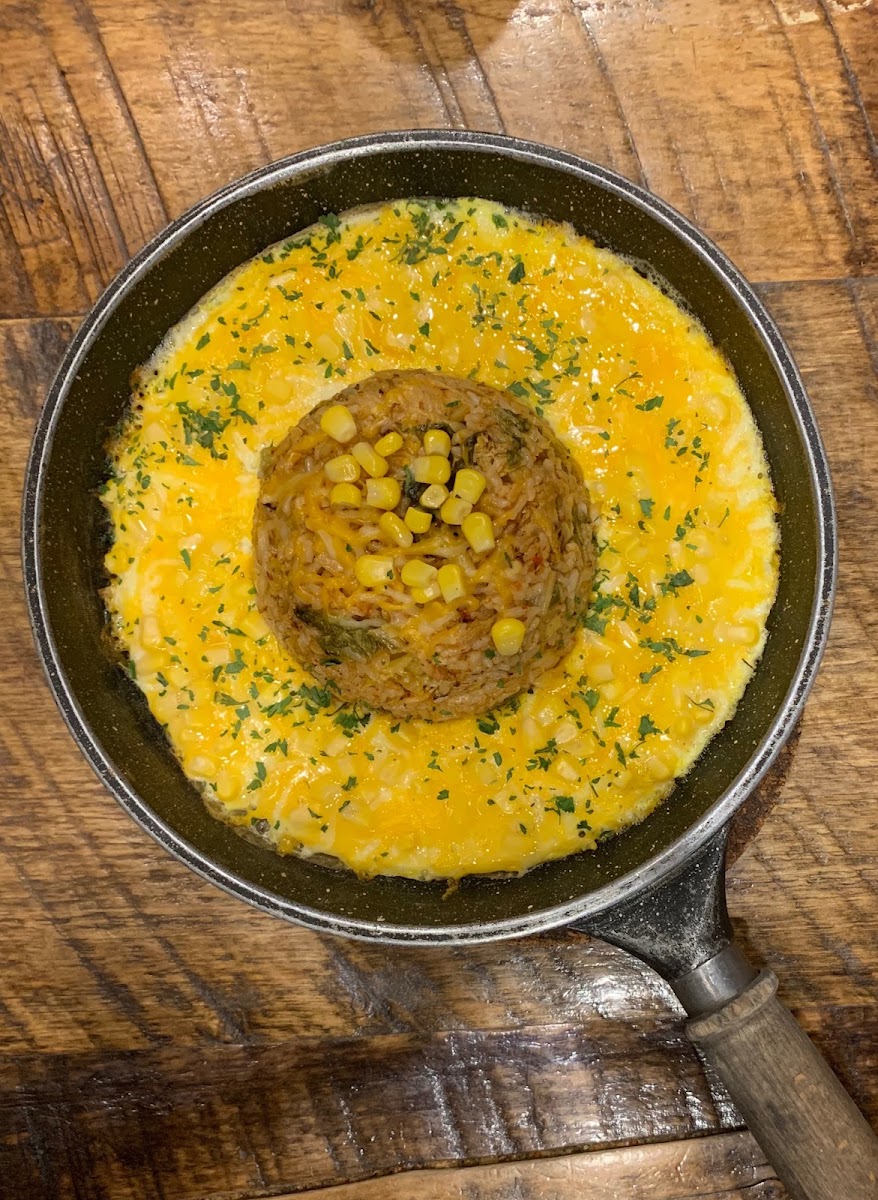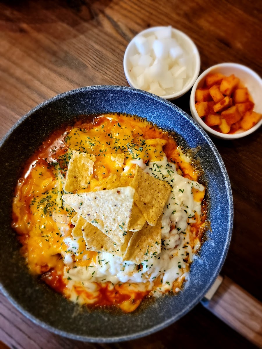 This unique dish features crispy Menchi Katsu, a Japanese-style breaded and fried ground pork cutlet, paired with fluffy rice and topped with a perfectly cooked egg. It’s a hearty meal that brings together elements of both Korean and Japanese cuisine.