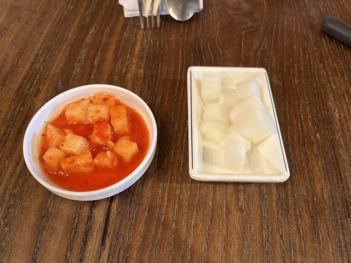 A side dish often enjoyed with Korean meals, Kkakdugi is a type of kimchi made with diced radish. Its tangy, spicy, and slightly sweet flavor makes it the perfect accompaniment to any meal at Poetree Cafe.