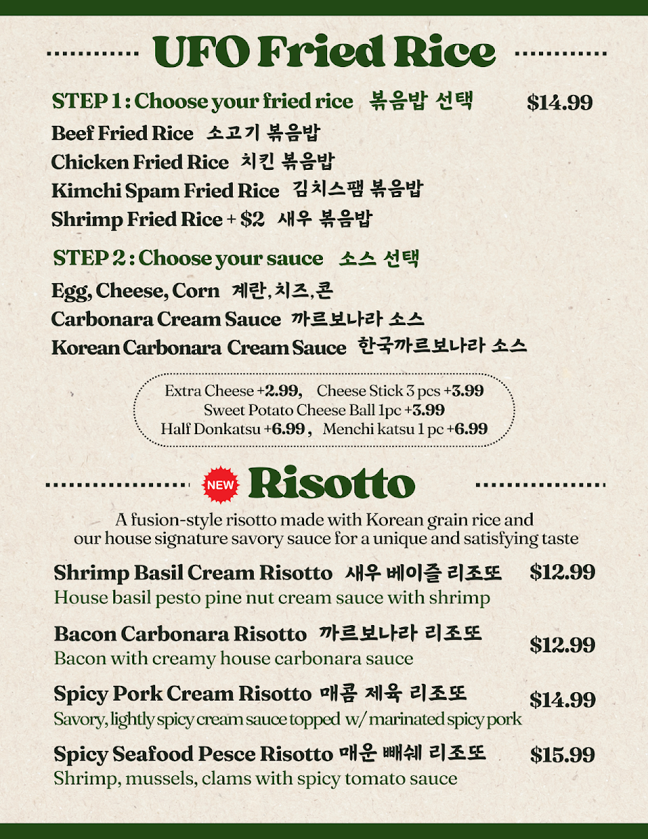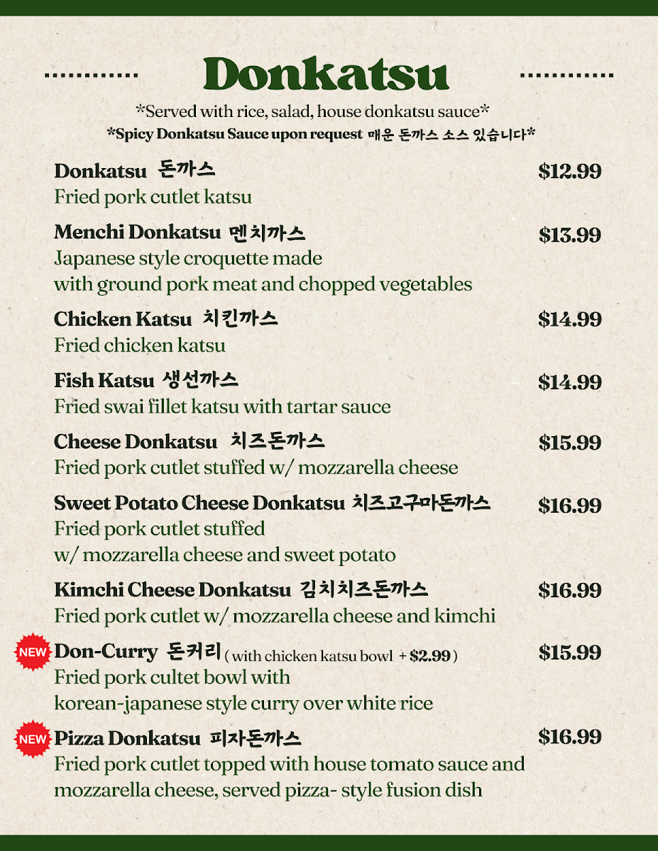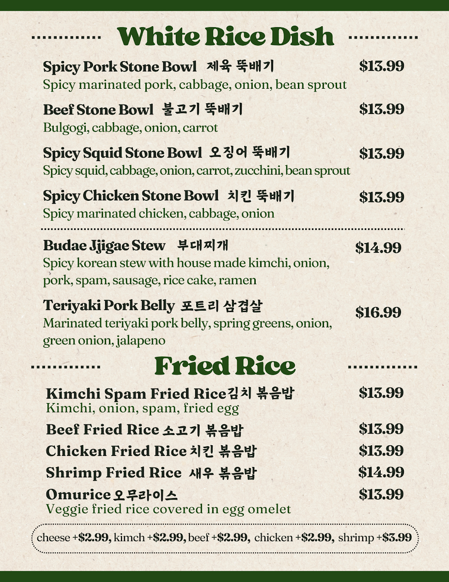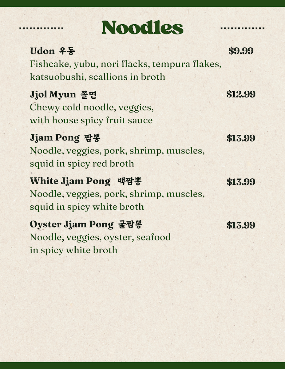 Poetree Cafe, nestled in the heart of Suwanee, where delicious meets delightful! Our menu is a culinary journey featuring a tantalizing array of dishes that promise to ignite your taste buds. Start your adventure with our signature Menchi Katsu, perfectly finished with eggs and served on a bed of rice, or dive into the UFO Fried Rice, a playful twist packed with flavor. For those seeking something spicy, the Spicy Chicken Skillet and Spicy Seafood Linguine with Mussels will hit the spot. Don't miss out on our unique Spicy Squid Kimbab and comforting Donkatsu Pasta. Pair your meal with a warm bowl of Oden Kkochi (fishcake skewers soup) or the refreshing Jjol Myun for a delightful balance. Each plate is crafted with care to create memorable dining experiences. Visit us at 45 Old Peachtree Rd NW and explore the Poetree Cafe menu that invites you to taste the extraordinary!